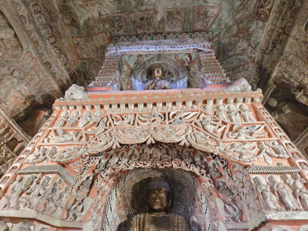 第5・6窟:豪華絢爛な装飾と仏伝図が壁一面に彫り込まれており、「雲岡の傑作」とも称されています。