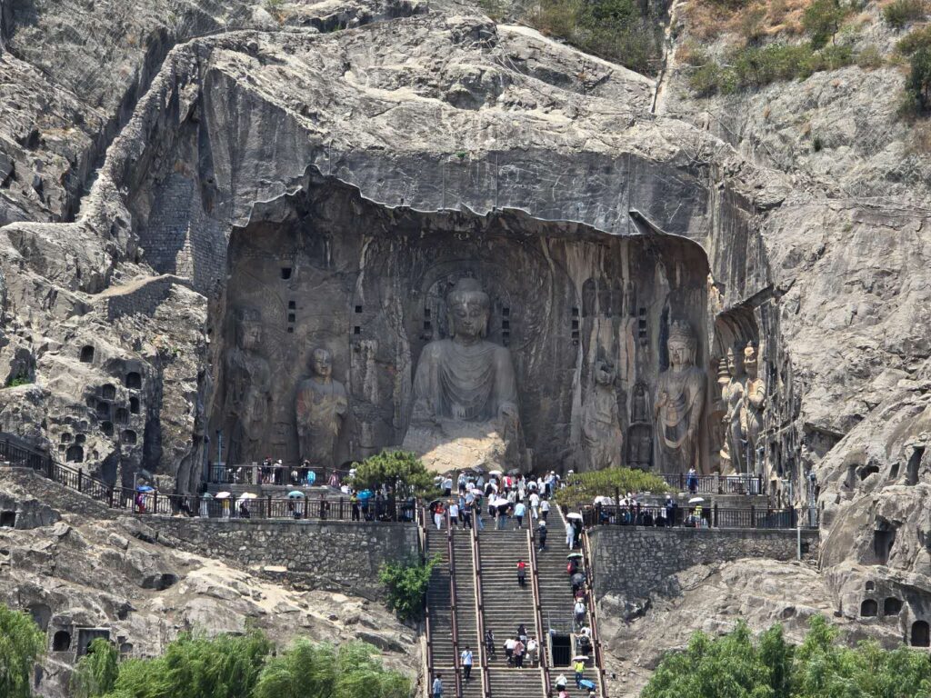 北京から高速鉄道で4時間ほど、河南省洛陽市にある龍門石窟。作られたのは6世紀~8世紀にかけて、北魏後期~唐代と言われています。洛陽は当時の中華大陸の中心都市で知識や情報が集まっていました。なので龍門石窟の様式は中国独自の漢風様式となっています。